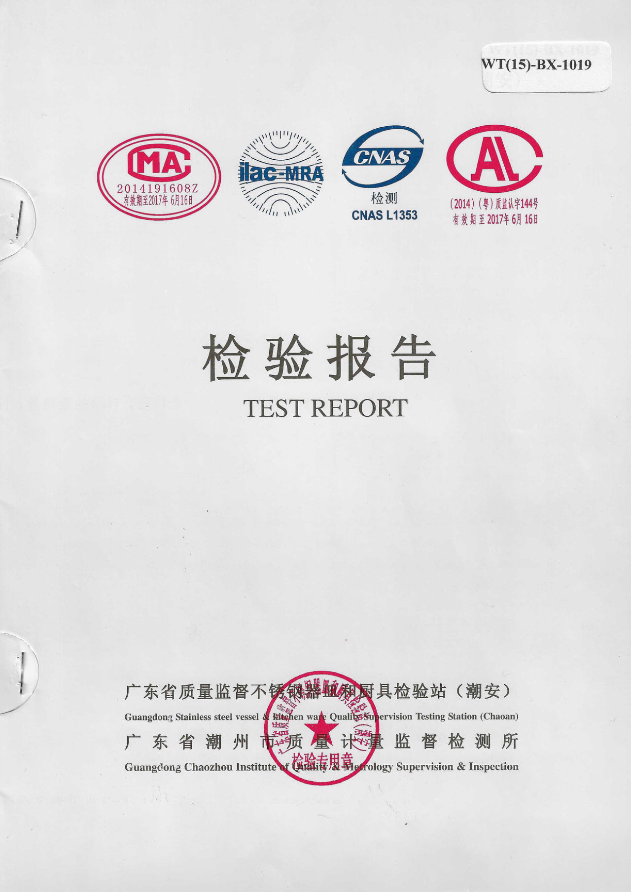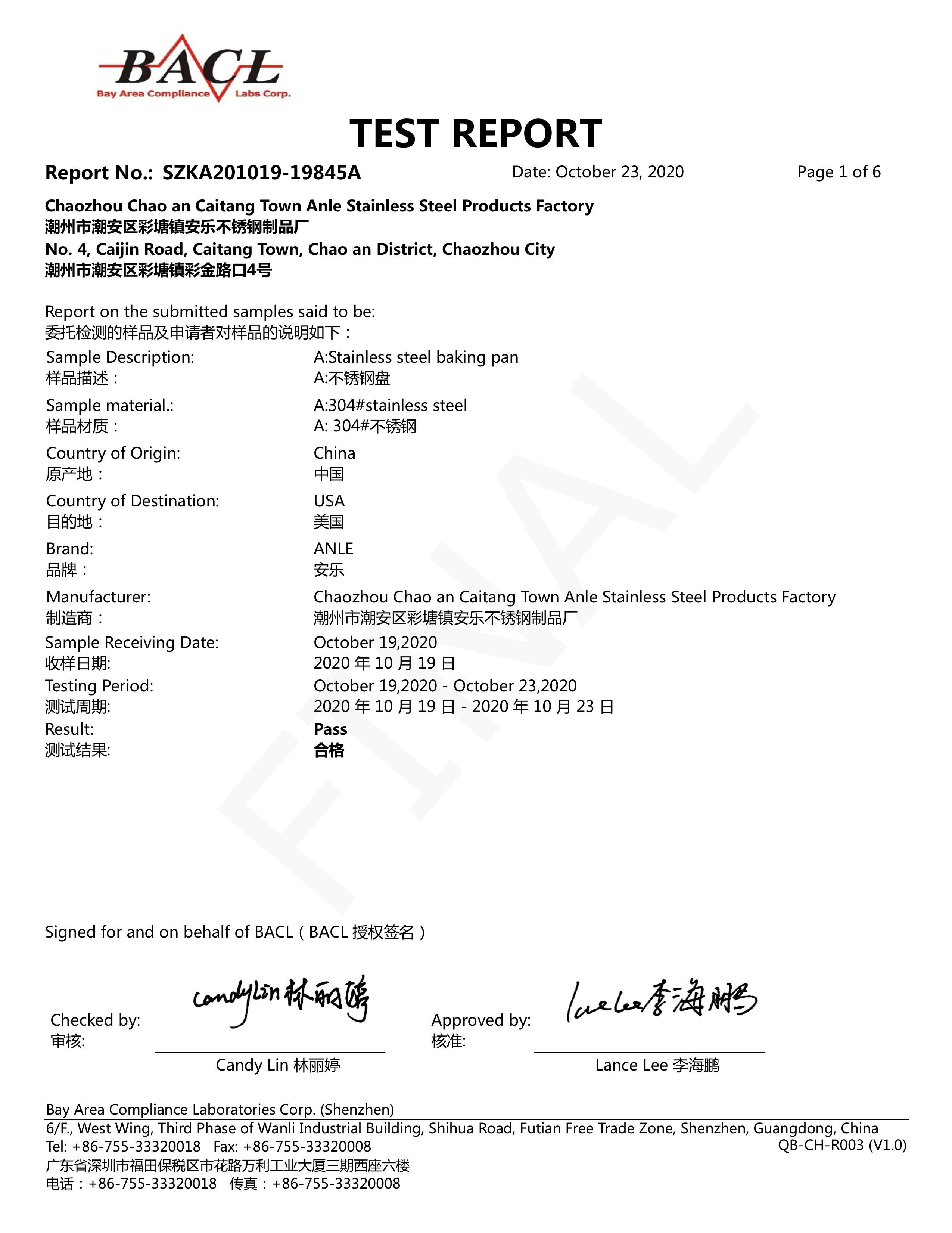 不锈钢烤盘架FDA检测报告